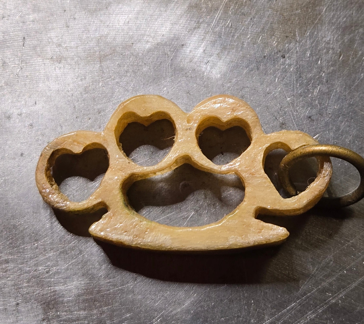 Hand-Carved Human Bone Mini Brass Knuckles – Heart Cutouts